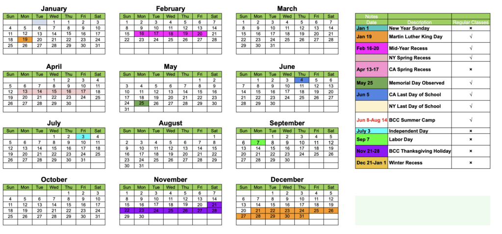 BCC School Calendar